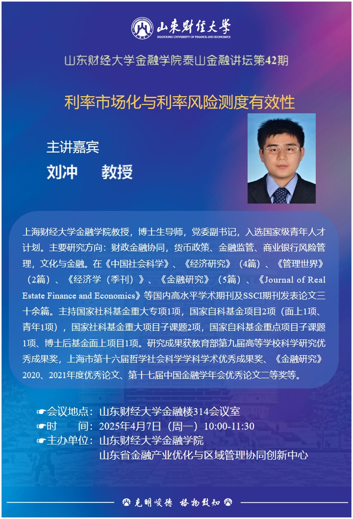 刘冲,上海财经大学新澳彩 教授,博士生导师,党委副书记,入选国家级青年人才计划。主要研究方向:财政金融协同,货币政策、金融监管、商业银行风险管理,文化与金融。在《中国社会科学》、《经济研究》(4篇)、《管理世界》(2篇)、《经济学(季刊)》、《金融研究》(5篇)、《Journal of Real Estate Finance and Economics》等国内高水平学术期刊及SSCI期刊发表论文三十余篇。主持国家社科基金重大专项1项,国家自科基金项目2项(面上1项、青年1项),国家社科基金重大项目子课题2项,国家自科基金重点项目子课题1项、博士后基金面上项目1项。研究成果获教育部第九届高等学校科学研究优秀成果奖,上海市第十六届哲学社会科学学科学术优秀成果奖、《金融研究》2020、2021年度优秀论文、第十七届中国金融学年会优秀论文二等奖等。