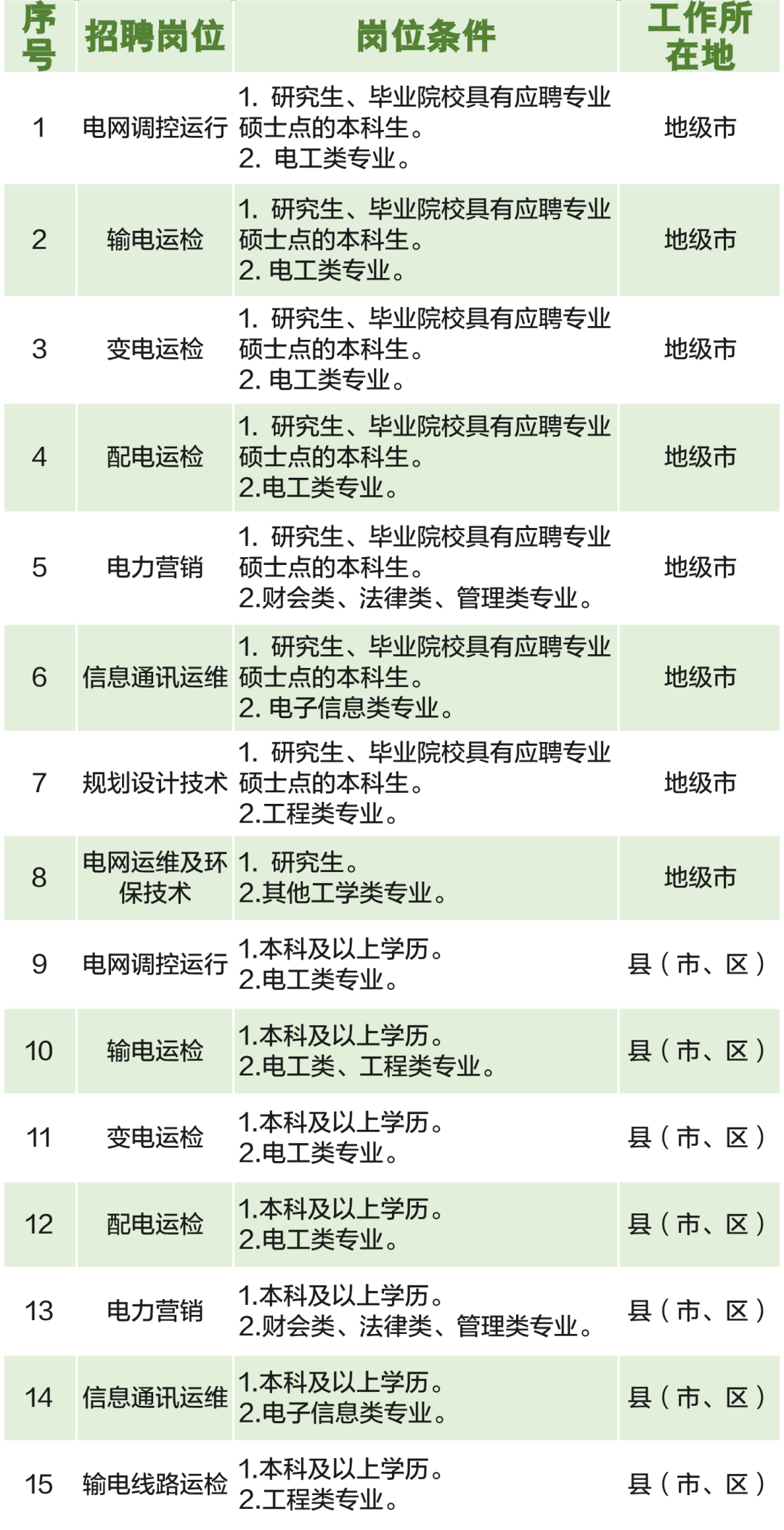 5.公司录用毕业生全部配置到生产、营销等一线岗位。根据国家电网有限公司规定要求,在一线工作最低年限为:硕士毕业生3年、本科毕业生5年。最低一线工作年限内,个人不得申请跨单位调动。