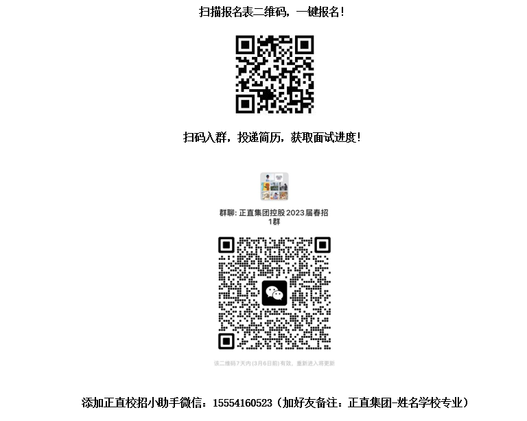 2、有实战经验的管理型人才,意向加入正直集团,集团人力资源部会与个人进行充分沟通,结合个人擅长的管理领域与集团发展的实际需求,安排合适岗位。