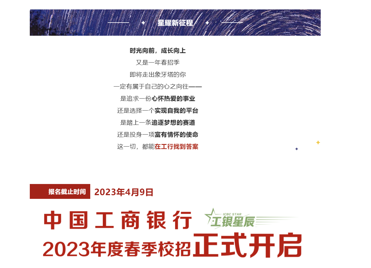 中国工商银行2023年度春季校园招聘正式启动
