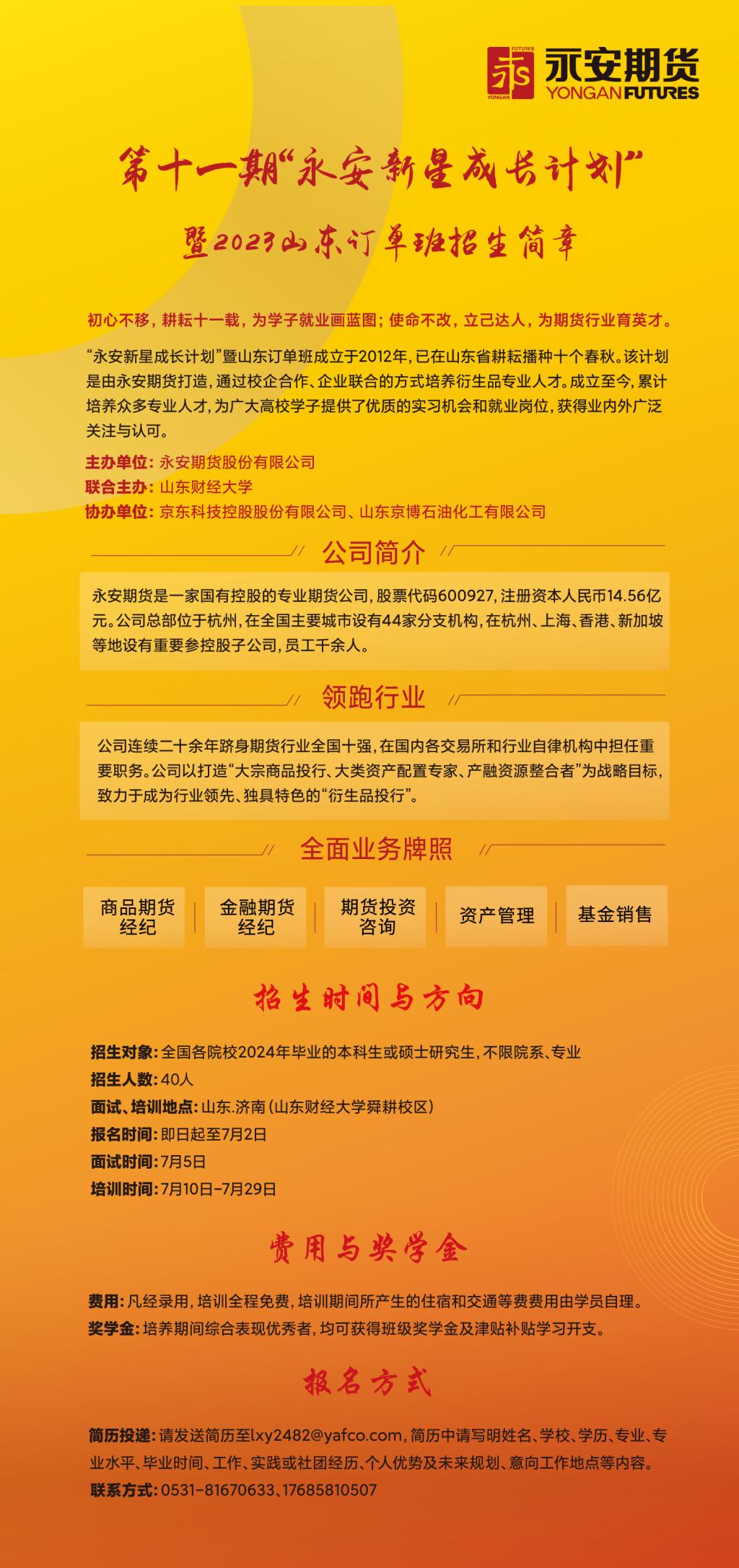 第十一期“永安新星成长计划”暨2023山东订单班招生简章