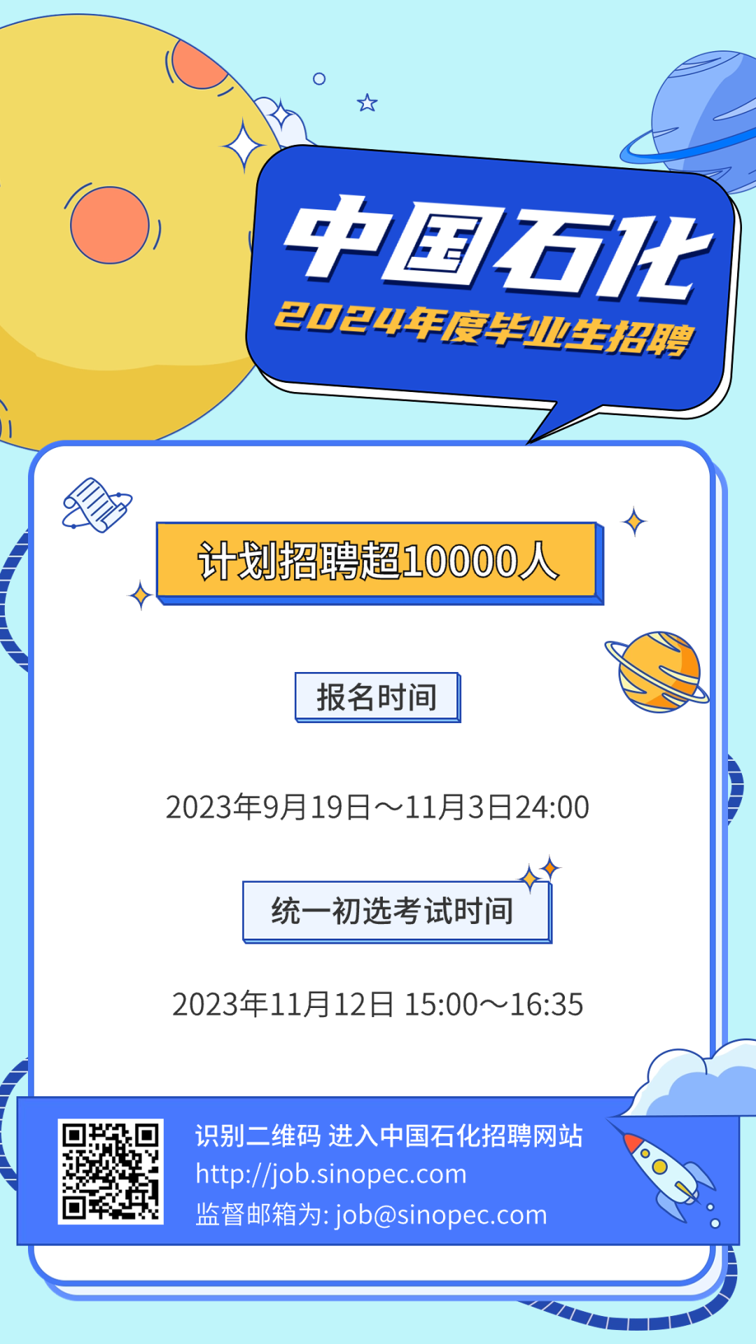 作为此次招聘的唯一渠道,中国石化招聘网站(//job.sinopec.com)于今日起正式接收毕业生网上投递简历,报名时间截至2023年11月3日。
