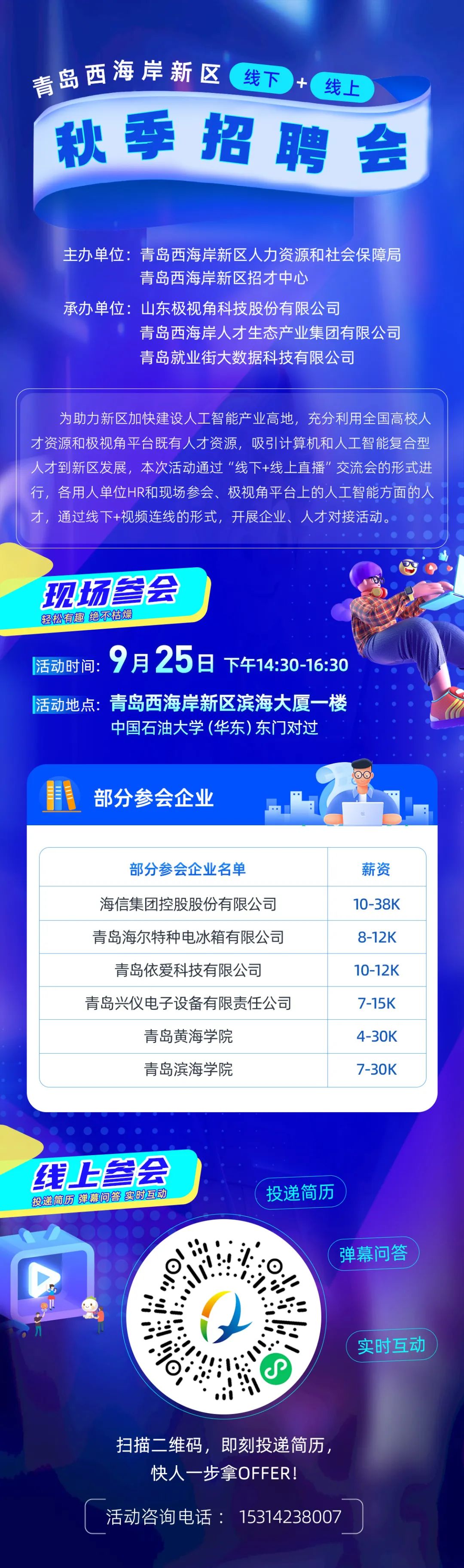 青岛西海岸新区人工智能产业秋季招聘会来啦
