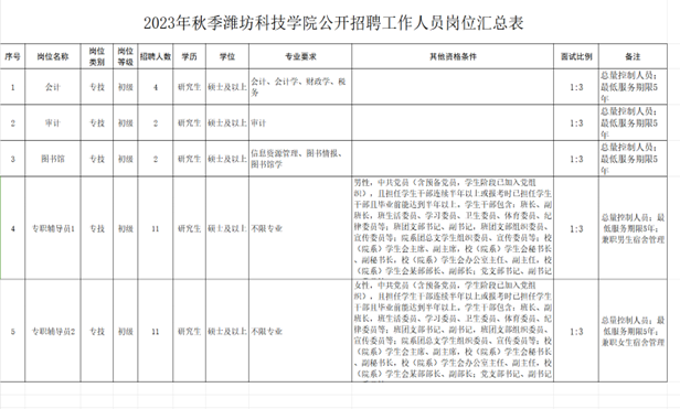 根据潍坊科技新澳彩岗位空缺和工作需要,按照《事业单位人事管理条例》(国务院令第652号)、《事业单位公开招聘人员暂行规定》(人事部令第6号)和事业单位公开招聘有关规定,2023年秋季潍坊科技新澳彩拟面向社会公开招聘工作人员30名。现将有关事项公告如下: