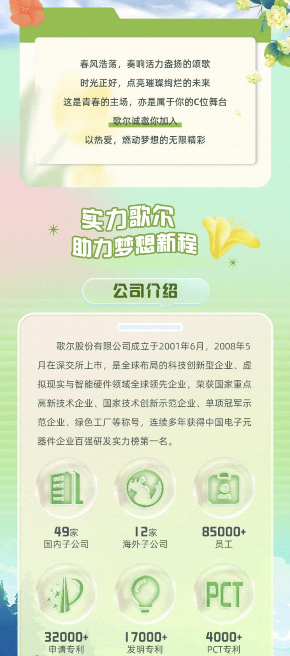 歌尔股份有限公司2024届歌尔之翼春季招聘