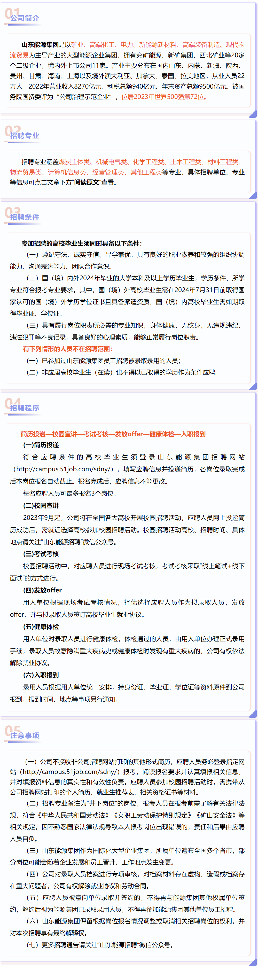 招聘简章 | 山东能源集团2024年高校毕业生校园招聘简章