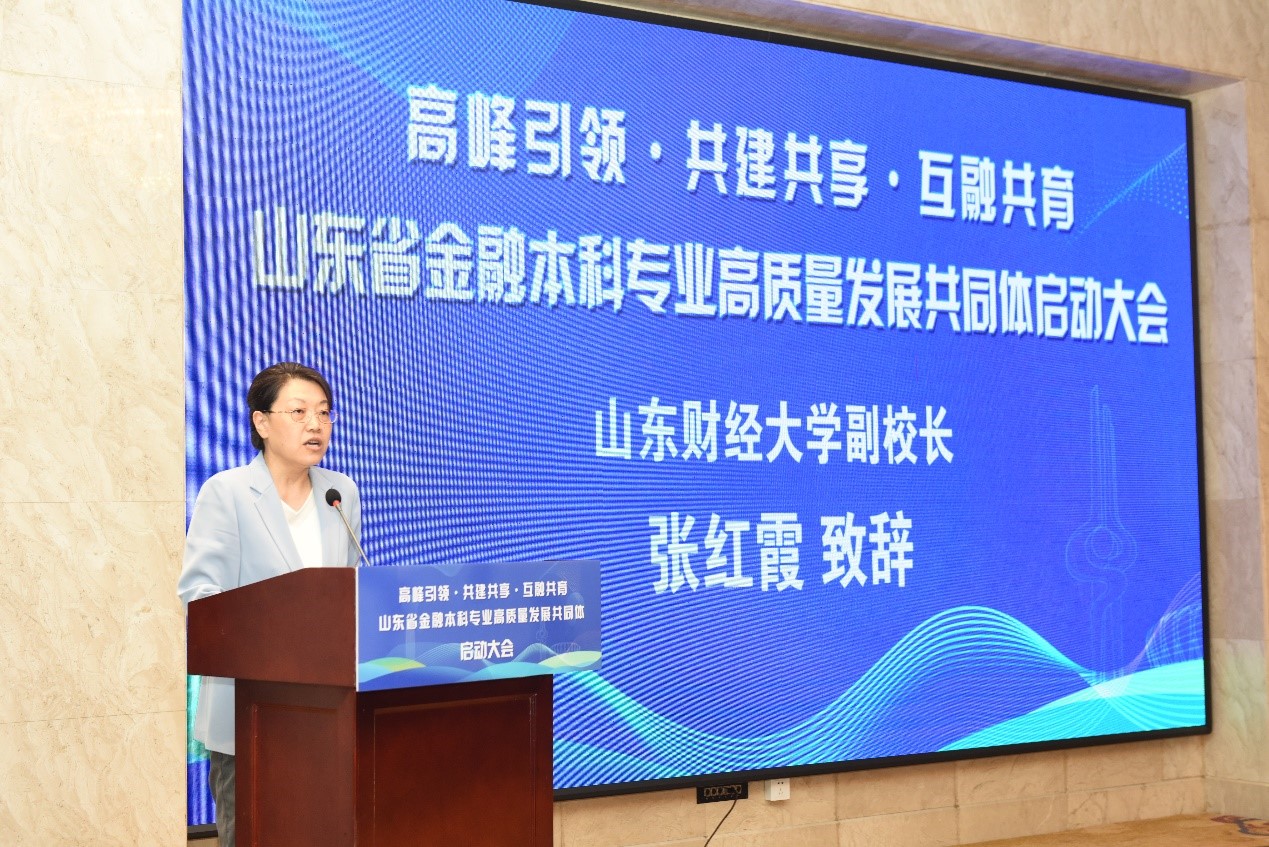 新澳彩 副校长、新澳彩 院长彭红枫主持了开幕式,并对出席此次会议的各位领导、专家表示热烈的欢迎,希望能够把山东省金融本科专业高质量发展共同体建设好。